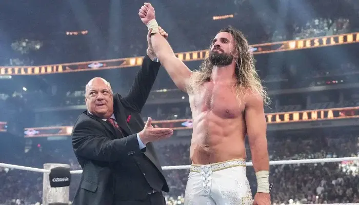 L’ambiance était électrique, avec des mois de tension entre les trois mégastars. Reigns, le Chef de Tribu, revenait pour reconquérir son trône après une brève pause, entouré d’une Bloodline revitalisée avec Tama Tonga et Hikuleo. CM Punk, la Voix des Sans-Voix rebelle, avait regagné le sommet de la WWE après une sortie controversée de l’AEW, jurant de détrôner Reigns et de prouver que ses détracteurs avaient tort. Seth Rollins, le Visionnaire, apportait son flair révolutionnaire, cherchant à voler la vedette et le titre qu’il avait perdu à Reigns des années auparavant. La foule de 70 000 spectateurs, à guichets fermés, rugissait tandis que le trio s’affrontait, chaque entrée – le cortège royal de Reigns, le « Culte de la Personnalité » provocateur de Punk et les gloussements frénétiques de Rollins – préparant le terrain pour le chaos.