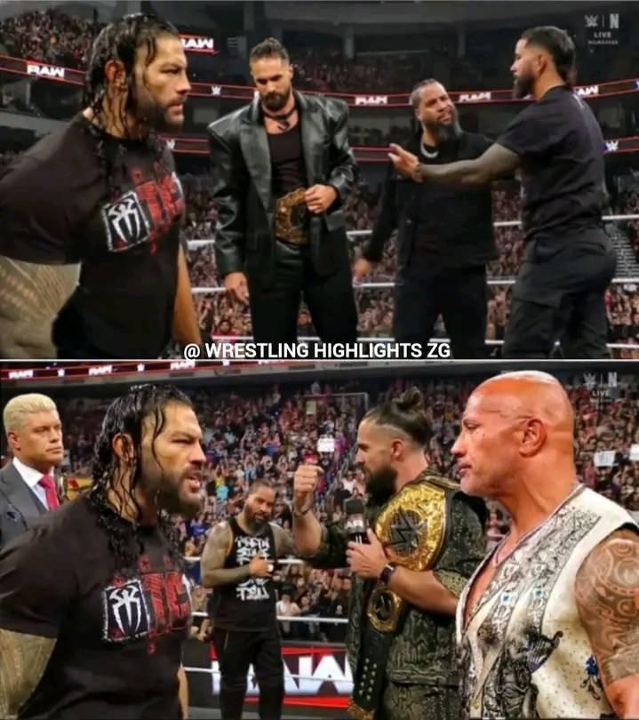 WWE officials and security rushed to the ring as the three men exchanged heated words, teasing what could be one of the biggest rivalries in WWE history: The Rock vs. Roman Reigns vs. Seth Rollins — a generational war for power, pride, and legacy.